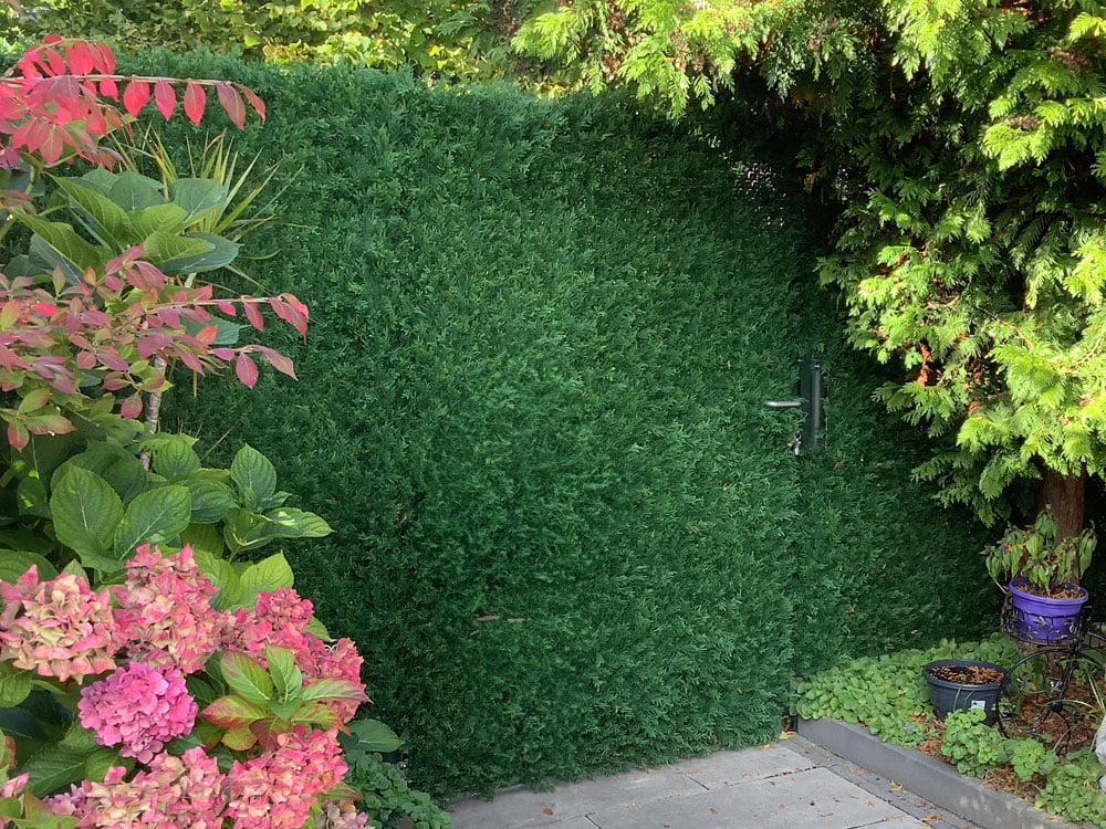 De Japanse cipres conifeer kunsthaag is specifiek ontworpen om muren, hekken en schuttingen te verfraaien. Vervaardigd uit superieure kunststoffen, is het bijna niet van echt te onderscheiden. De minutieus vormgegeven takjes verlenen deze haag een authentieke uitstraling. Met onze unieke Nano-UV-blocker© blijven de levendige kleuren van de haag tot acht jaar lang schitteren, zelfs in zonlicht.