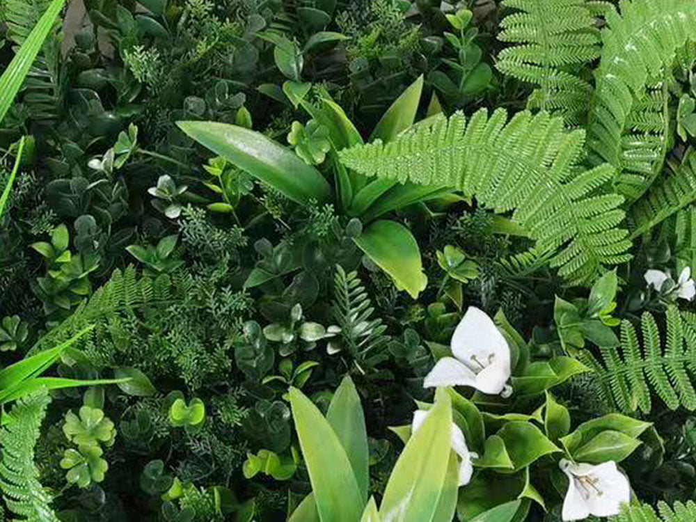 De Dracaena wit-orchidee kunsthaag biedt een weelderige mix van verschillende bladsoorten en kleuren, waardoor een levendig en realistisch effect ontstaat. Deze kunsthaag combineert lange, smalle Dracaena-bladeren in diverse groentinten, variërend van diep donkergroen tot fris lichtgroen, wat zorgt voor een dynamisch en natuurlijk schaduwspel. Daarnaast voegen de sierlijke varenbladeren een delicate textuur toe, die perfect contrasteert met de meer robuuste Dracaena-bladeren. De donkergroene achtergrond van kleinere bladeren creëert een dicht, vol effect, wat de haag een rijke en natuurlijke uitstraling geeft. De witte orchideeën, met hun elegante en levensechte bloemblaadjes, voegen een fris en verfijnd accent toe, waardoor de haag extra opvalt. De combinatie van de verschillende groentinten, het subtiele spel van licht en schaduw, en de delicate witte bloemen maakt deze kunsthaag een ideale keuze voor het verfraaien van zowel binnen- als buitenruimtes.