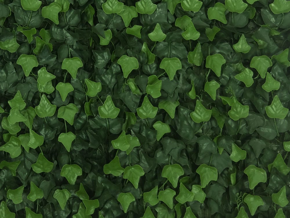 De Hedera helix is een kunsthaag met een rijke variatie aan bladvormen, die gezamenlijk een dichte, groene bedekking vormen. Het ontwerp bevat glanzende, donkergroene bladeren die de kenmerkende vorm van Hedera helix of gemeenschappelijke klimop nabootsen, compleet met puntige uitlopers aan de randen. Tussen deze donkere bladeren zijn daarnaast levendige, lichtgroene bladeren geplaatst, die een natuurlijk kleurcontrast bieden en de illusie van nieuwe groei versterken. De bladeren variëren in grootte en zijn zo geplaatst dat ze elkaar overlappen, wat de natuurlijke groeiwijze van een klimophaag imiteert. Dit type kunsthaag biedt een onderhoudsvrij alternatief voor levende planten en is ideaal voor het toevoegen van een groene toets aan zowel binnen- als buitenruimtes.