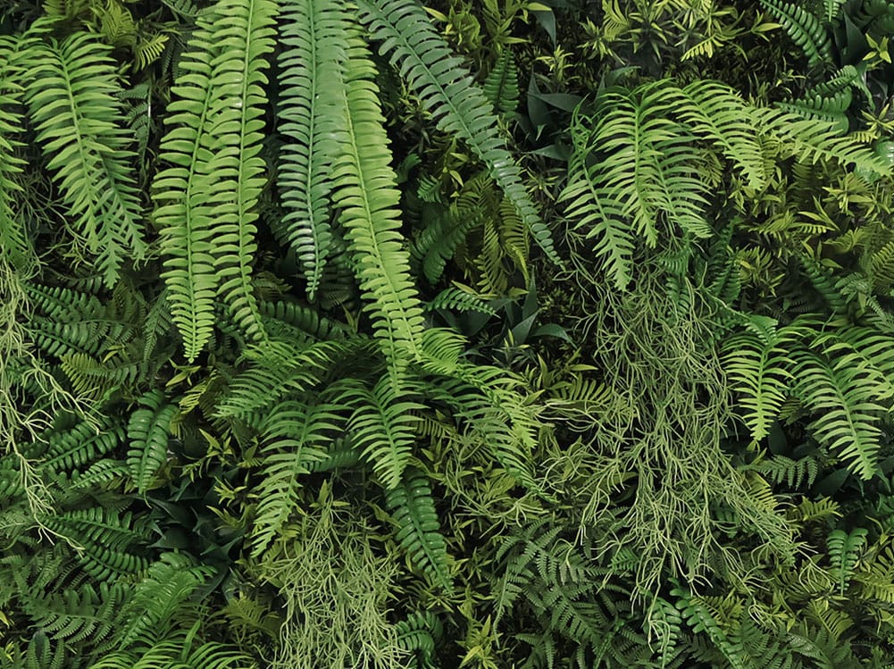 Waar echte varens veel zorg en een vochtige omgeving nodig hebben, biedt deze kunstwand dezelfde uitstraling zonder onderhoud. Geen water geven, snoeien of speciale verzorging – enkel genieten van een blijvend groene, sfeervolle wand.