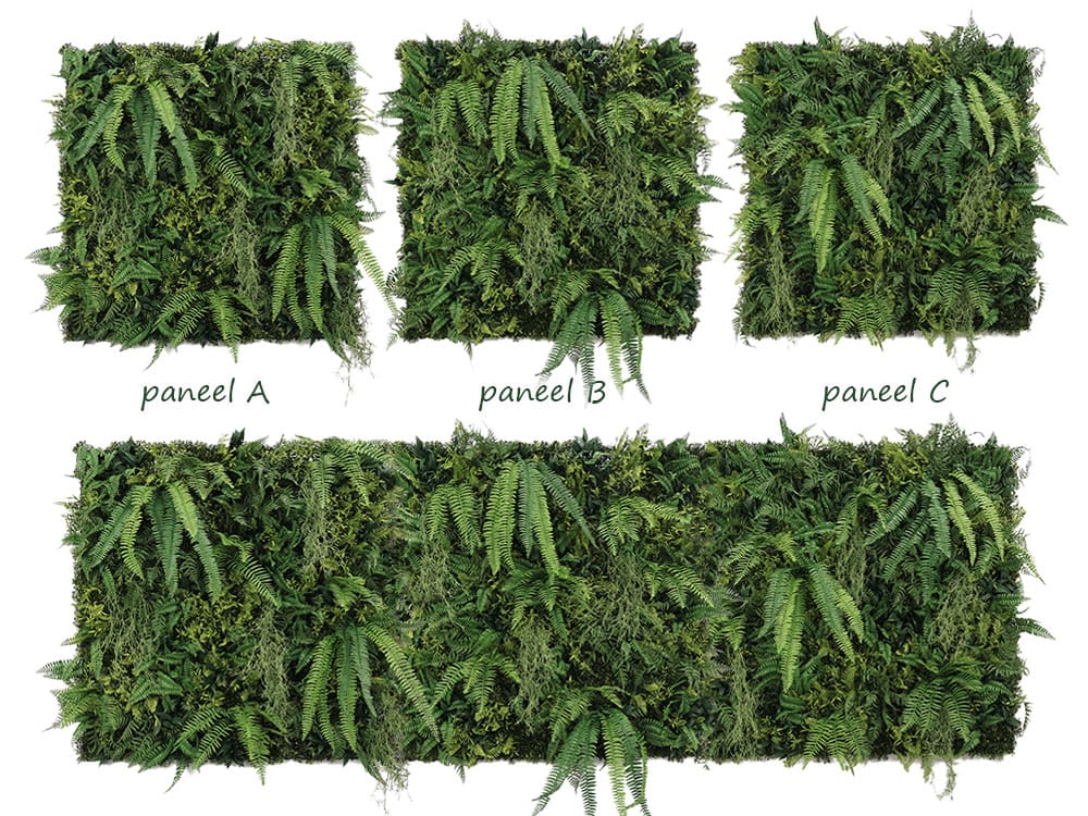Standaard kunsthagen kunnen soms een herhalend patroon vertonen doordat elk paneel identiek is geproduceerd. De Krulvaren Botanica is ontworpen om dit te voorkomen. Er zijn meerdere varianten beschikbaar die willekeurig worden gemixt, zodat de overgang tussen panelen natuurlijk oogt. Wanneer meerdere matten worden verbonden, ontstaat er een vloeiend geheel zonder zichtbare naden of herhalingen. Zo ziet de plantenwand er altijd levendig en natuurgetrouw uit.