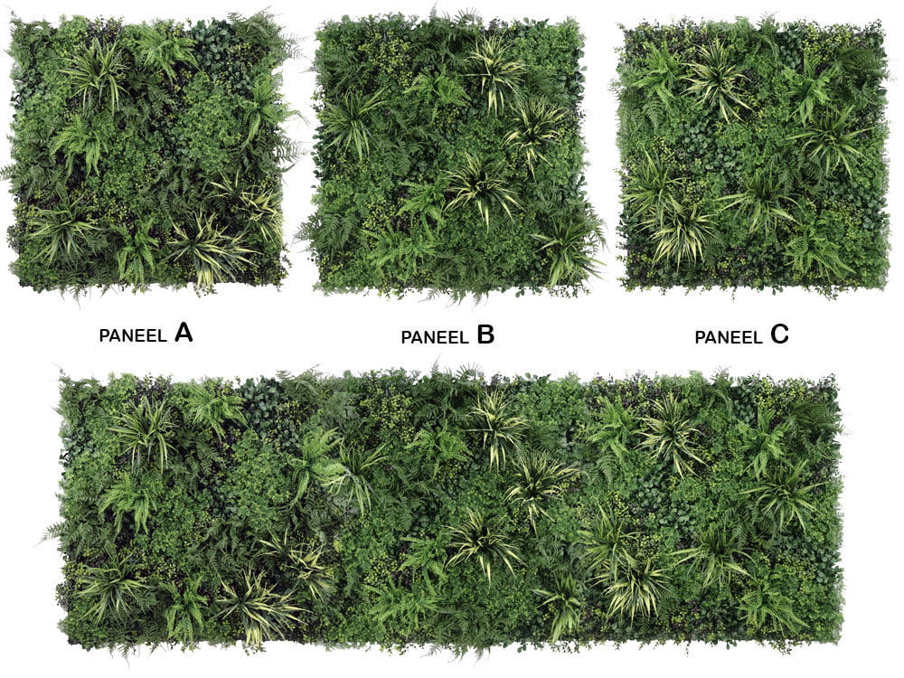 Een standaard kunsthaag volgt vaak een uniform productieproces, waardoor elke mat van 100×100 cm identiek is. Dit leidt tot een herhalend patroon op de kunstplantenmuur. Voor een natuurlijker effect zorgen wij ervoor dat niet elke bloem en plant op dezelfde plek zit. Wanneer meerdere matten worden verbonden, worden zichtbare overgangen vermeden, wat de kunsthaag een vloeiender en natuurlijker uiterlijk geeft. Dit noemen we ‘patroonloos’ of ‘zonder patroon’. We bieden drie unieke ontwerpen (A, B, en C) die willekeurig gemixt worden om repetitie te voorkomen. Het is daarom niet nodig om een voorkeur aan te geven.