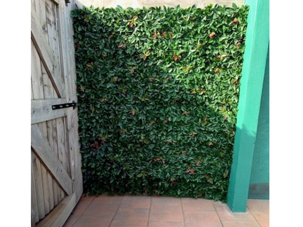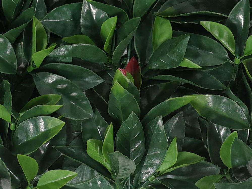 Dankzij de speciaal ontworpen dichte achterkant en de dichtheid van de lichtgroene bladeren biedt deze kunsthaag 100% privacy. De bladeren, elk 8 cm lang, vormen na een zachte “opschudding” een indrukwekkend realistisch groen oppervlak. Het schaduwspel van de kleinere bladeren creëert een aantrekkelijke lichtdynamiek. Deze fijn bladige vegetatiehaag wordt veel gebruikt door stand bouwers om plafonds en wanden tijdens beurzen en evenementen te decoreren, vanwege de donkergroene tint en robuuste bladeren, aangevuld met speelse rode bladeren. De verfijnde textuur en de mogelijkheid tot personalisatie met insteekbladeren verhogen de sfeer. Bekijk onze insteekplanten hier.