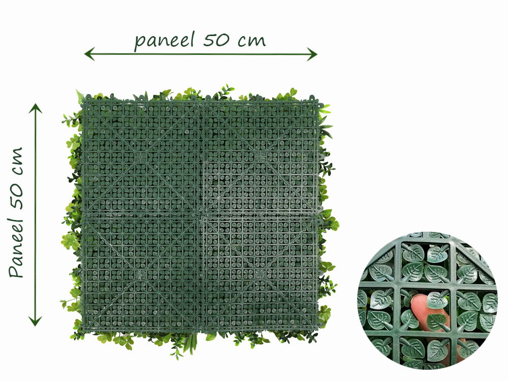 Een standaard kunsthaag heeft een open gaasmat met pinnen. Modellen met dichte achterkant vullen rasters met bladvormig materiaal. Deze flexibele bladvulling drukt men eenvoudig weg voor montage met bandjes. Gesloten kunsthagen bieden daarom meerdere voordelen: