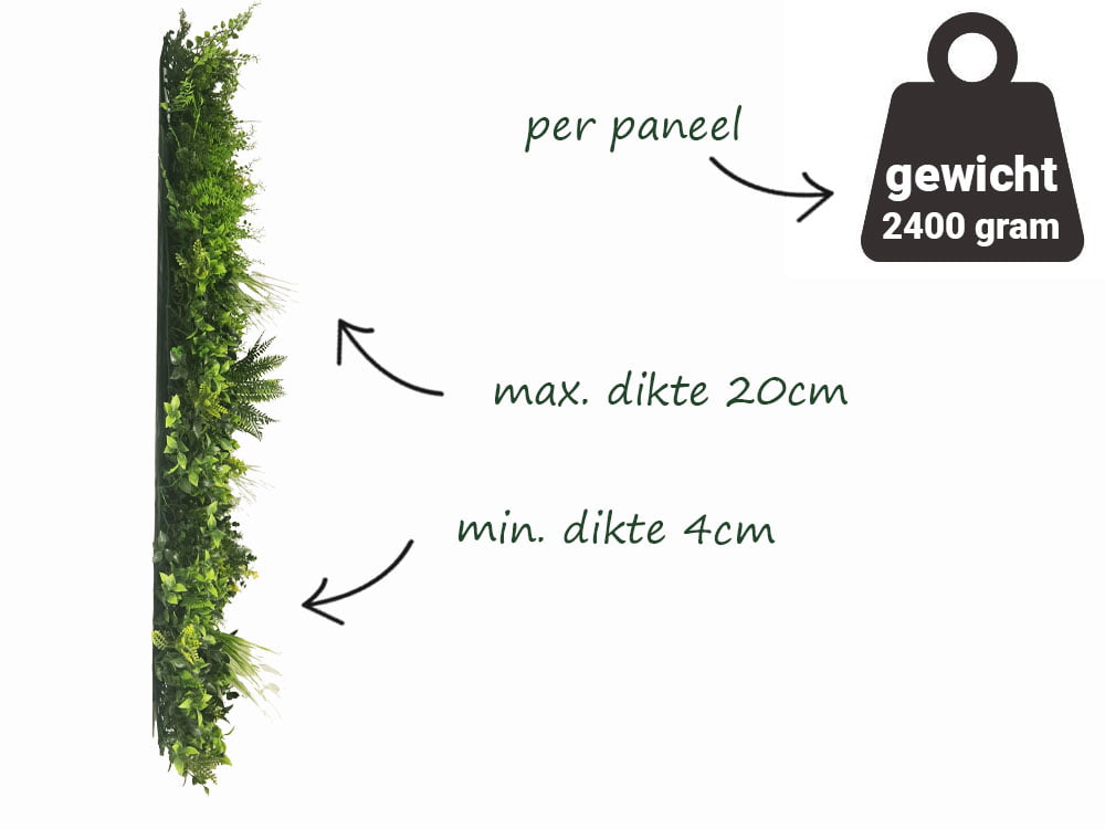 De vegetatie fijn gevarieerd Plantenwand is erg populair in de horeca en voor op kantoor. De diversiteit van de bladeren combinatie maakt deze 3D Jungle mat erg populair. De premium kunststoffen die gebruikt zijn voor de productie zorgen voor de hoogst haalbare kwaliteit verkrijgbaar in de markt.