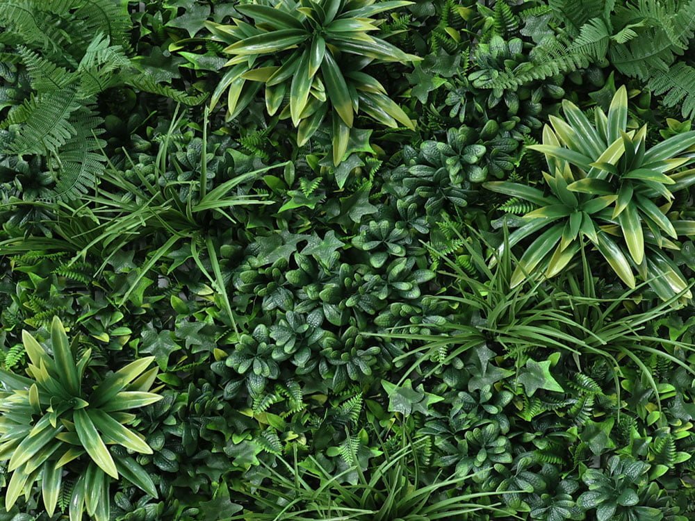 De vegetatie grof blad Jungle plantenwand kunsthaag is de populairste 1m² haag in de horeca en voor op kantoor. De diversiteit van de bladeren combinatie maakt deze 3D Jungle mat erg populair. De premium kunststoffen die gebruikt zijn voor de productie zorgen voor een hoogst haalbare kwaliteit verkrijgbaar in de markt.